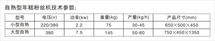 小型自熟年糕粉絲機(jī)的技術(shù)參數(shù):
