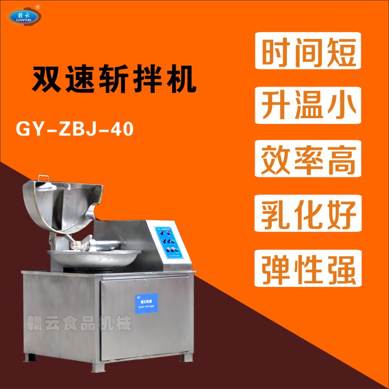 雙速斬拌機利用斬刀高速旋轉(zhuǎn)的捶打作用,將物料及輔料捶打成肉餡或肉泥。使物料的捶打時間短,溫升小,提高了物料的細膩度,可充分提取蛋白,使產(chǎn)品具有彈性強、乳化結(jié)果好、出品率高等特點。 她不但在肉類加工中有著高效的作用,而且能實現(xiàn)巧克力、杏仁蛋白軟糖、奶酪、水果等食品類的加工,有效保證產(chǎn)品的保質(zhì)期。