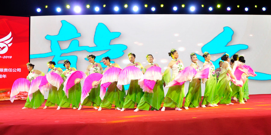 廣西皖維公司的職工們帶來了舞蹈《壯鄉(xiāng)情韻》。與內(nèi)蒙豪邁粗獷不同的是,廣維職工的表演細(xì)膩、深沉,帶有濃濃的壯鄉(xiāng)風(fēng)情,把現(xiàn)場(chǎng)職工帶進(jìn)了劉三姐的故鄉(xiāng)。表演結(jié)束后,廣維的姐妹還以傳統(tǒng)的拋繡球方式,進(jìn)步把現(xiàn)場(chǎng)氣氛推向高潮。