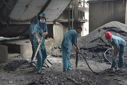 借大修改造之機(jī),水泥分廠對(duì)環(huán)境進(jìn)行整治。圖為職工在清理積灰
